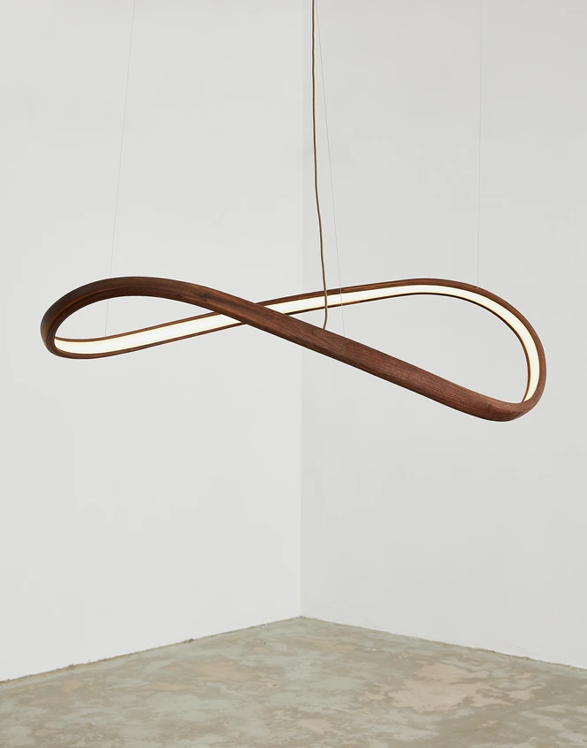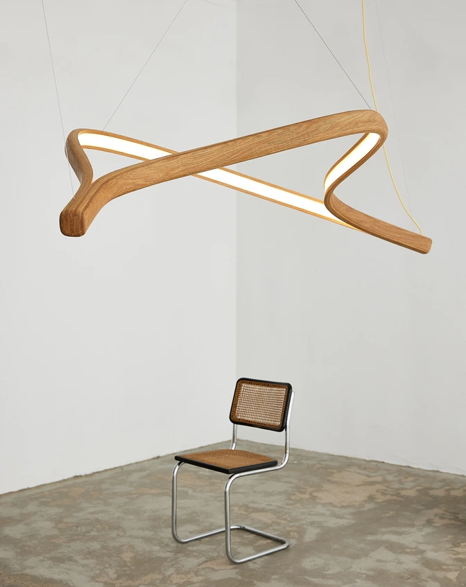 POÉMIA is a Portuguese brand created in 2024 by the artist Ricardo Costa. Discovering the capacity and versatility of wood to acquire new shapes, without ever losing its character, Ricardo honors this raw material by creating light sculptures, defining them as “living” pieces that create the illusion of metamorphosis, seeming to change shape as we move around them. The result is decorative lamps with an engaging, modern and minimalist design.